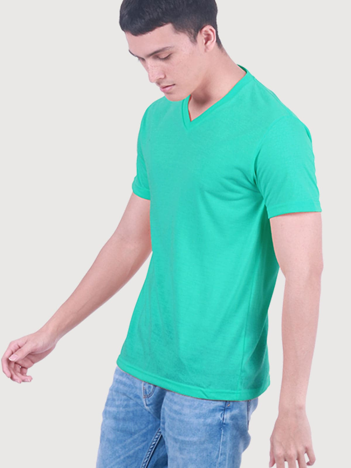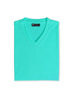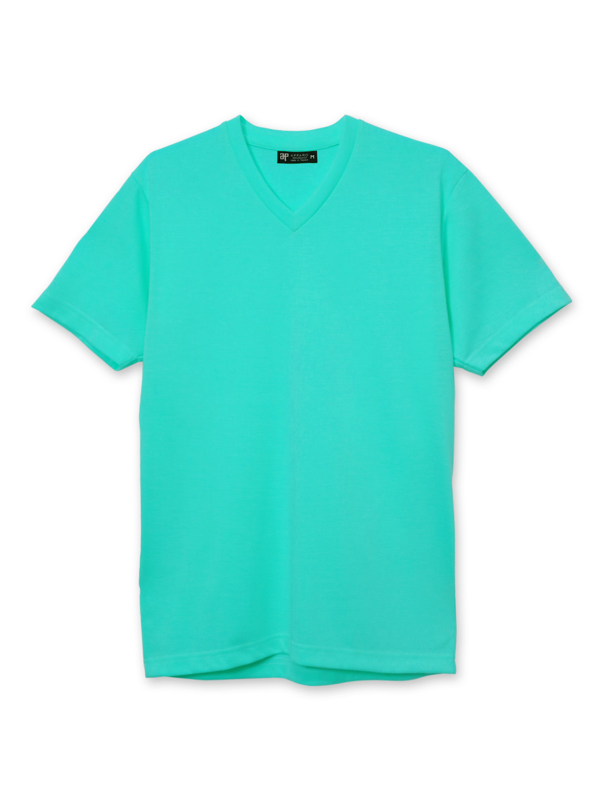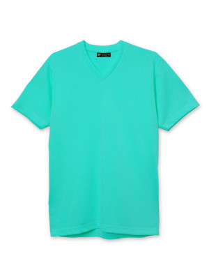 เสื้อยืดคอวี — สีฟ้ามิ้น