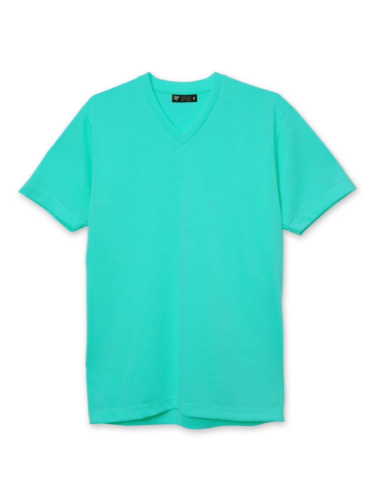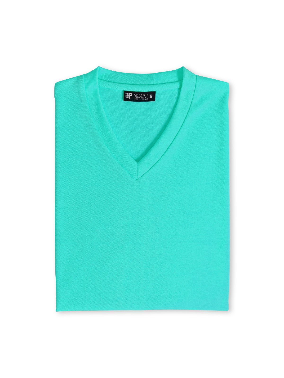 เสื้อยืดคอวี — สีฟ้ามิ้น